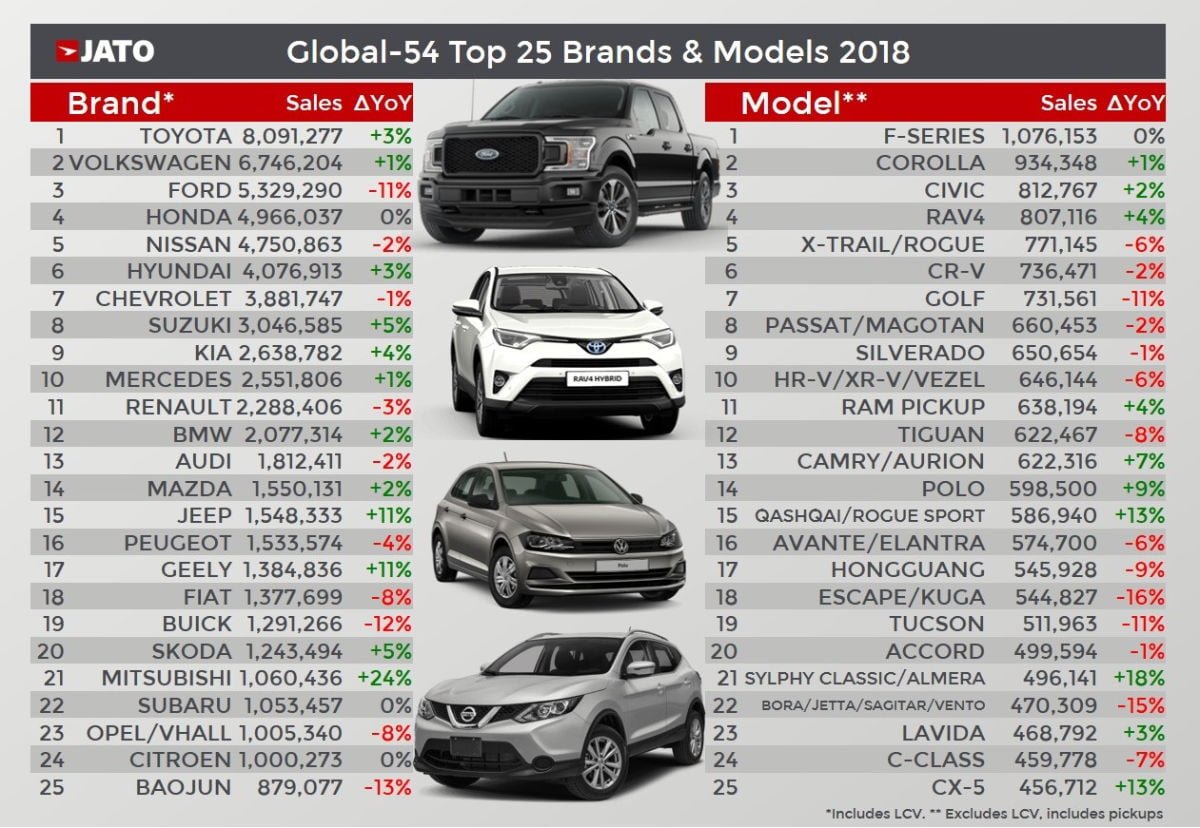 - 1 2 3 4 5 6 7 8 9 10 11 12 13 14 15 16 17 18 19 (en-US) « 2018 Top-Selling Car Brands and Models Globally 2018 », sur Car Sales Statistics (consulté le )