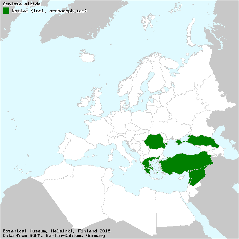 - قاعدة البيانات الأوروبية-المتوسطية للنباتات. خريطة انتشار الجينيستا المبيضة (بالإنكليزية). تاريخ الولوج 6 تشرين الأول 2013. نسخة محفوظة 09 يناير 2018 على موقع واي باك مشين.