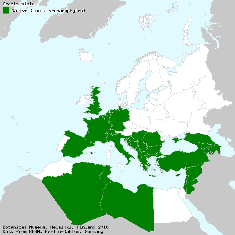 - (باللاتينية: Orchis simia f. brevidens Rouy)