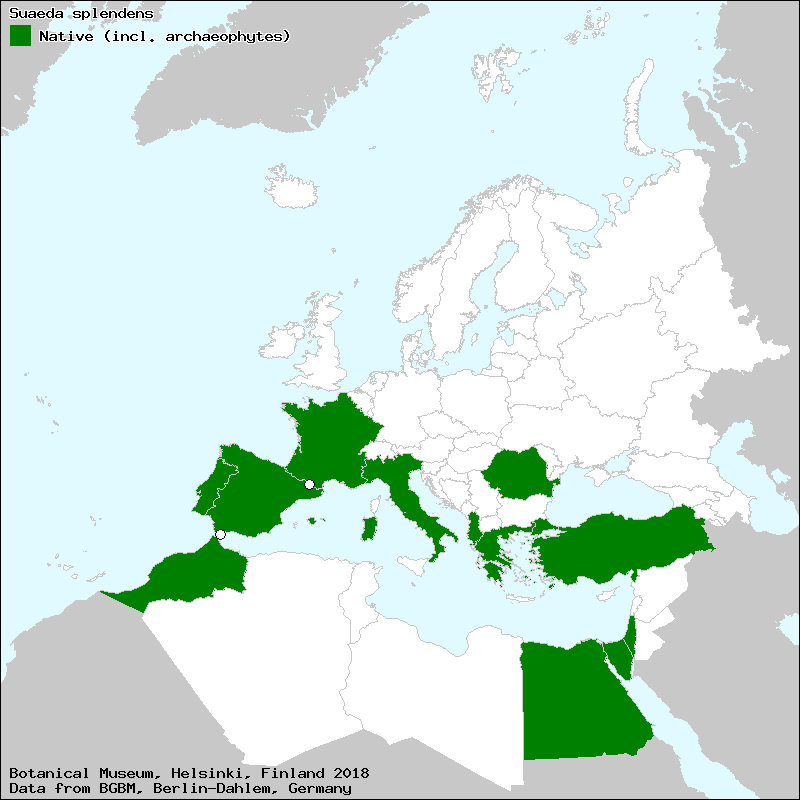 2. قاعدة البيانات الأوروبية-المتوسطية للنباتات.خريطة انتشار السويداء الزاهية (بالإنكليزية). تاريخ الولوج 19 شباط 2014. نسخة محفوظة 09 يناير 2018 على موقع واي باك مشين.