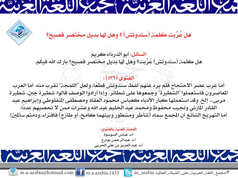 - الفتوى (539) - مجمع اللغة العربية على الشبكة العالمية نسخة محفوظة 28 أغسطس 2016 على موقع واي باك مشين.